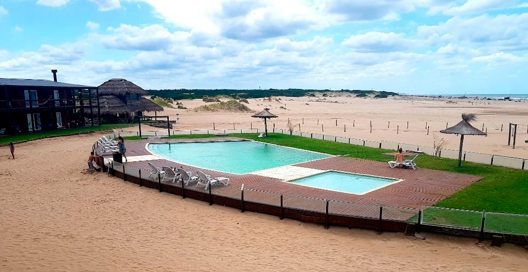 Para niños y adultos, de agua dulce natural en la playa. Con cerco y confortable deck a pasos de los aparts.